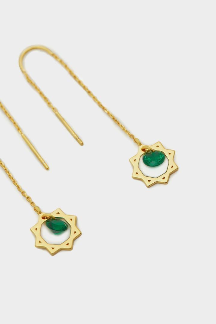 Pendientes largos bañados en oro formados por una cadena y un colgante en forma de estrella con detalle de cristal.