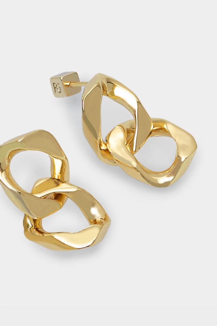 Pendientes formados por cadena de eslabones bañados en oro creando un efecto óptico de ochos encadenados. Cierre de tuerca a presión en forma de cubo PG.