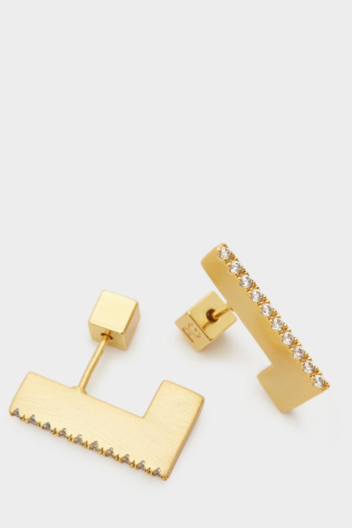 Pendientes bañados en oro con detalle de cristales. Cierre con tuerca a presión en forma de cubo.