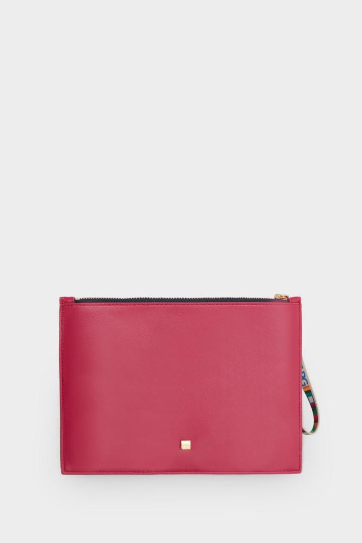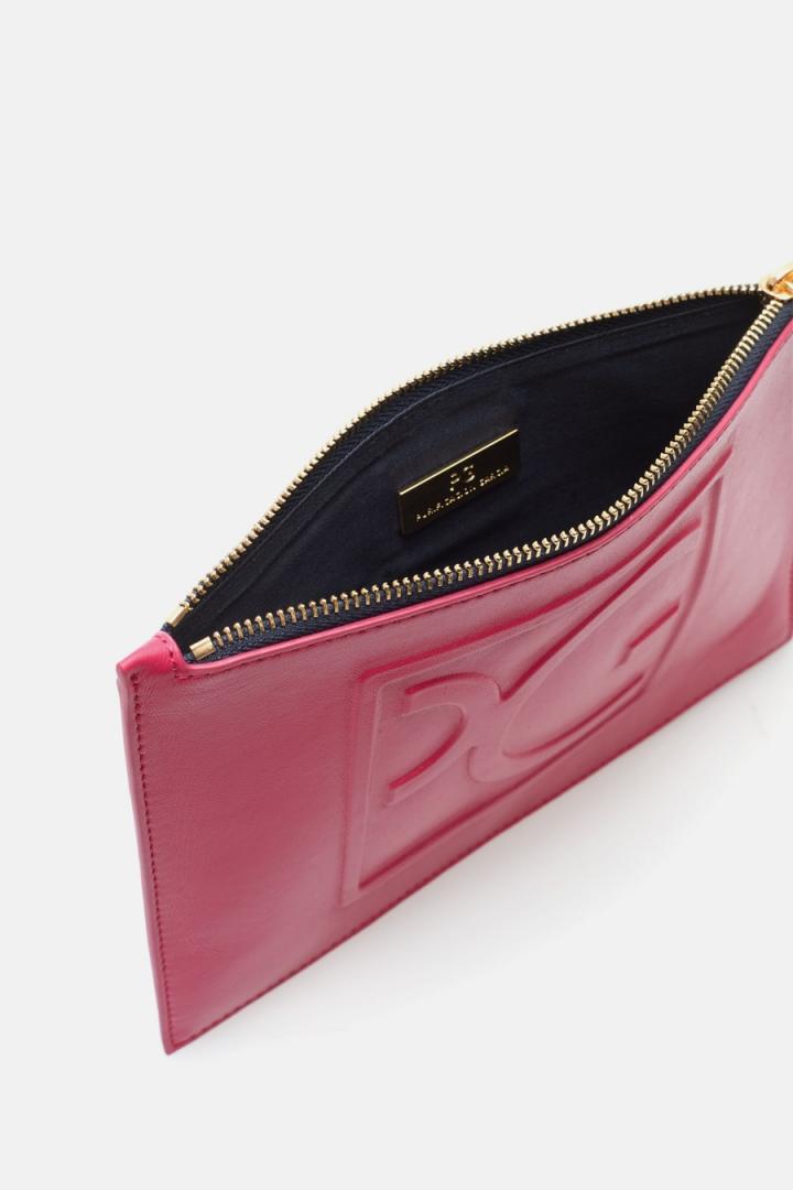 Pouch mediano en piel de napa con grabado Stamp de cubo PG. Cierre de cremallera y tirador de grosgrain estampado. Interior con forro completo.