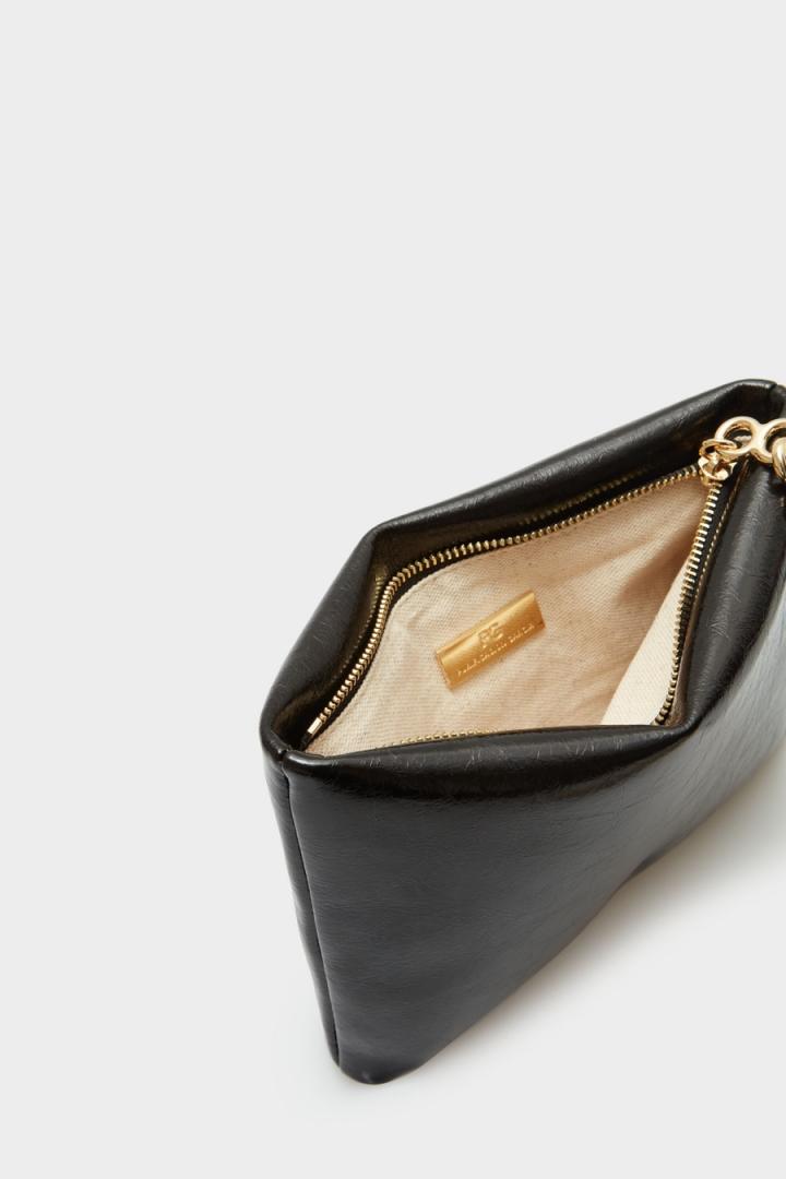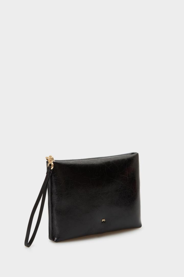 Pouch mediano en piel con logo PG metálico. Cierre de cremallera con muñequera en piel y metálica en forma de Ocho. Interio…