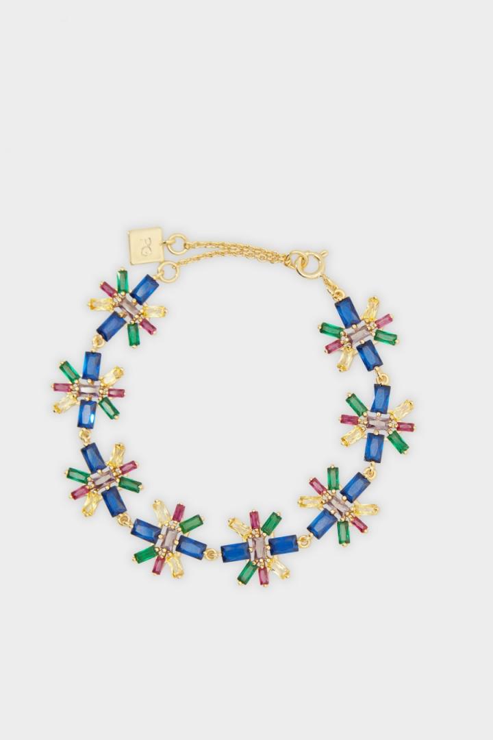 Pulsera bañada en oro en forma de llave personalizada con logo PG y detalle de cristal.