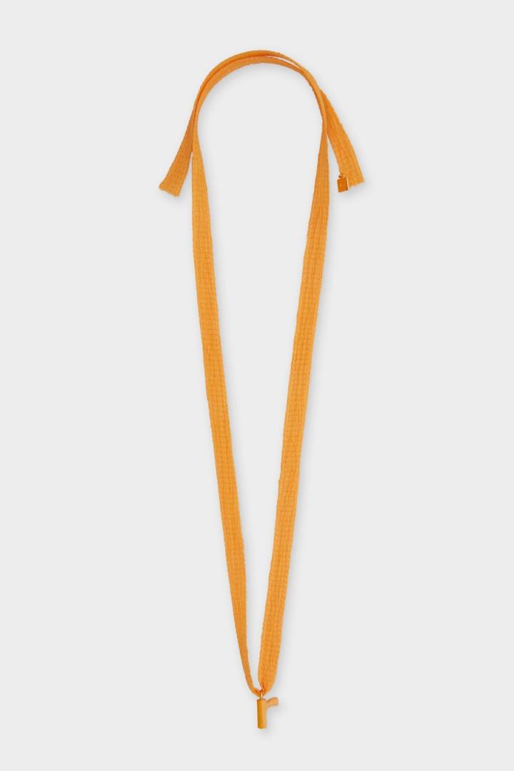 Pulsera de cinta con colgante de letra R esmaltada. Detalle de cubo PG metálico.