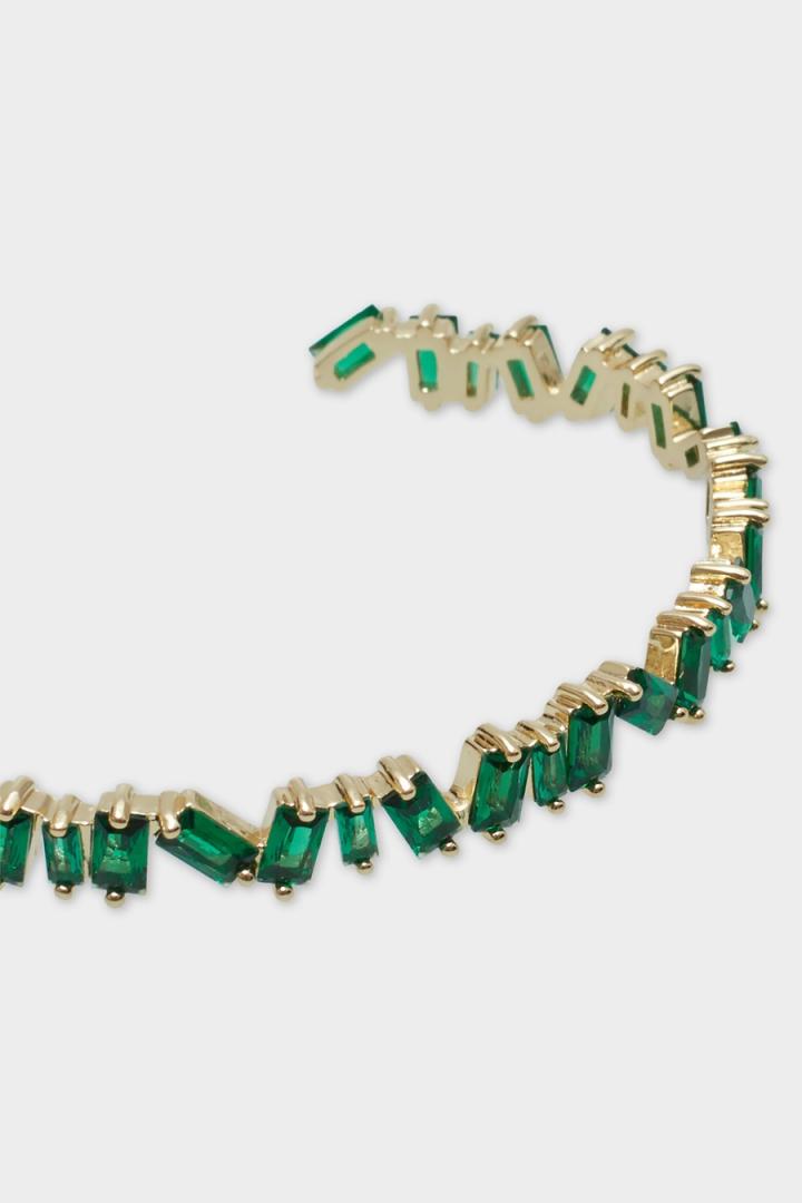 Pulsera rígida bañada en oro con cristales de forma rectangular.