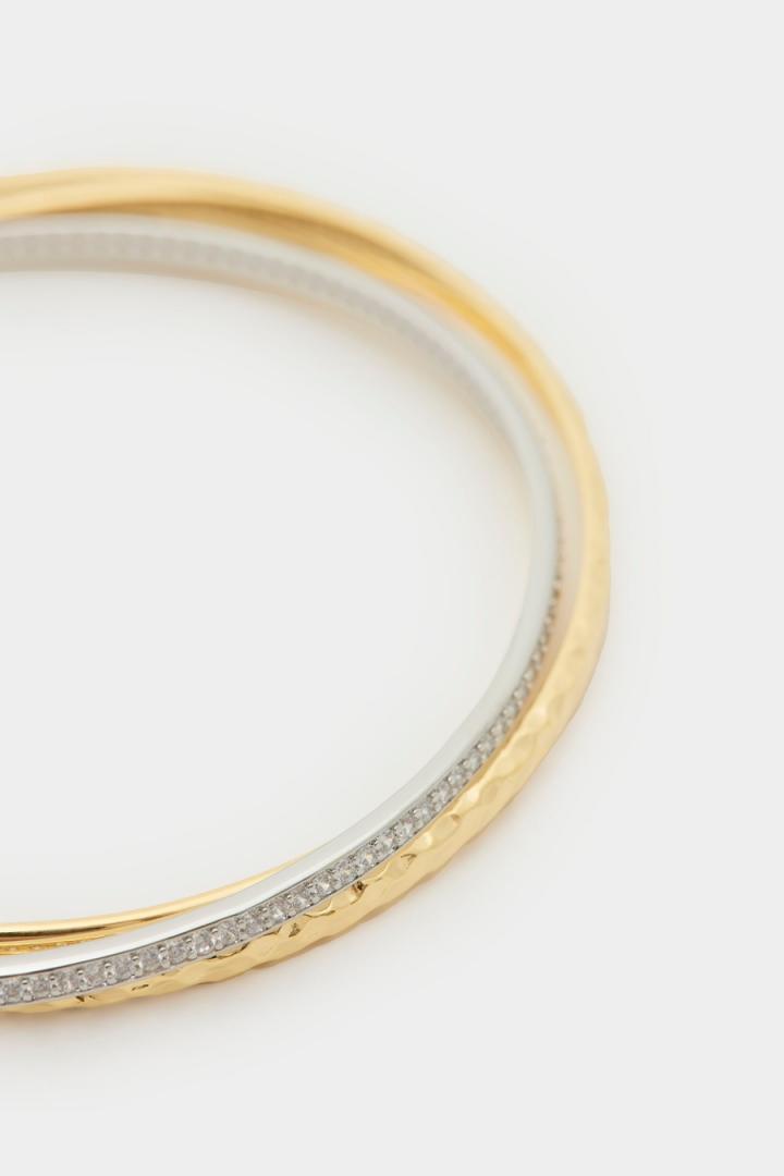Conjunto de pulseras rígidas bañadas en oro y rodio con detalle de cristales.