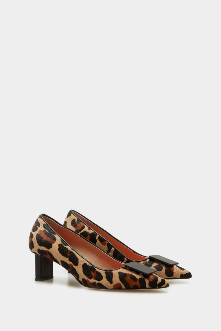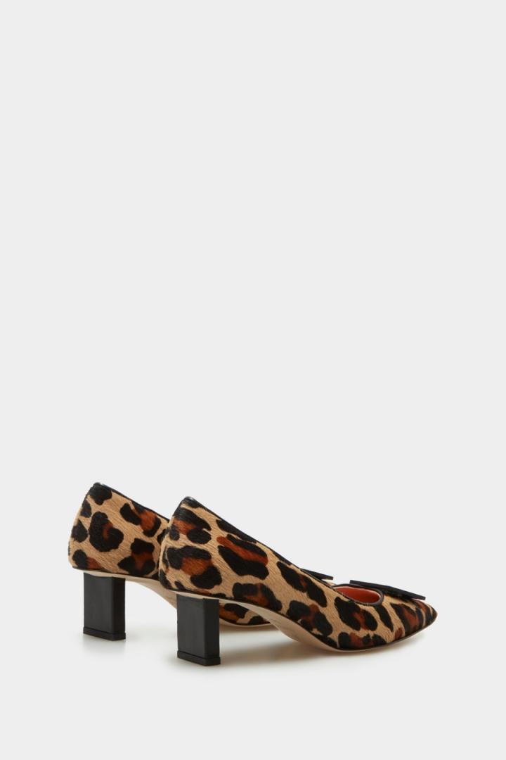 Salón de tacón medio en piel con acabado de pelo y estampado de leopardo. Detalle de chapón en forma de cubo a contraste. Plantilla de piel a contraste. Tacón: 65 mm.