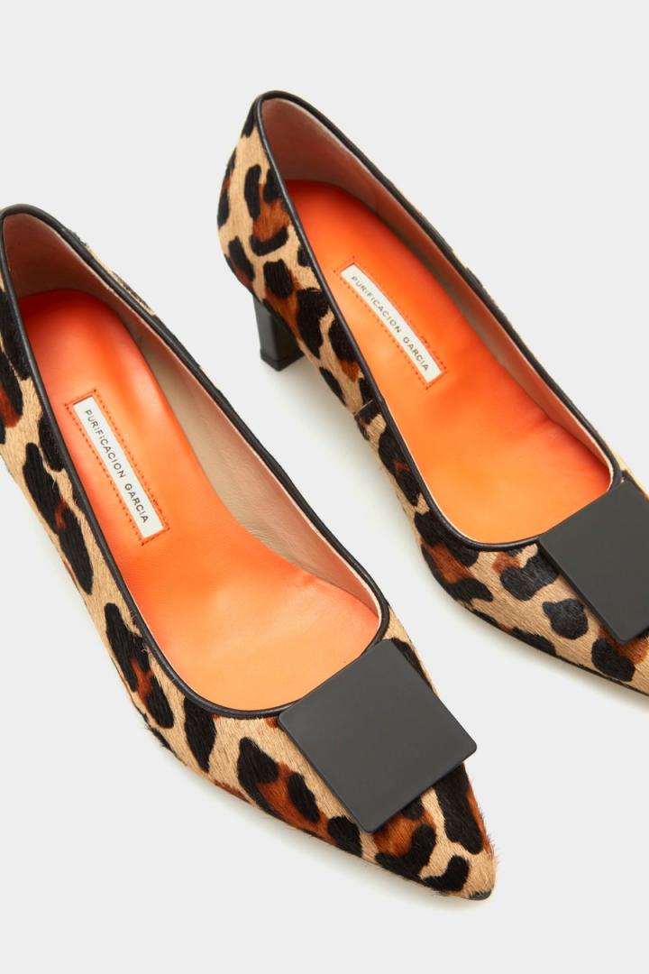 Salón de tacón medio en piel con acabado de pelo y estampado de leopardo. Detalle de chapón en forma de cubo a contraste. Plantilla de piel a contraste. Tacón: 65 mm….