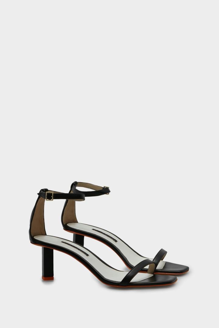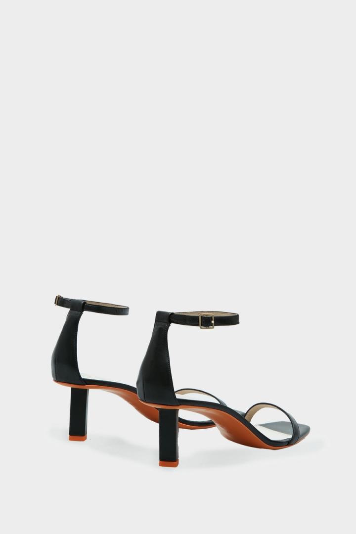 Sandalia de tacón medio en piel de Napa. Cierre de hebilla ajustable y plantilla de piel. Tacón: 65 mm.