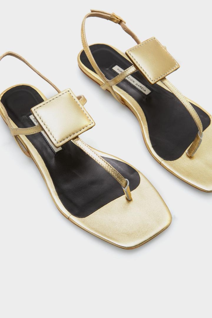 Mujer Purificacion Garcia Sandalia plana piel cubo Oro | Zapatos planos