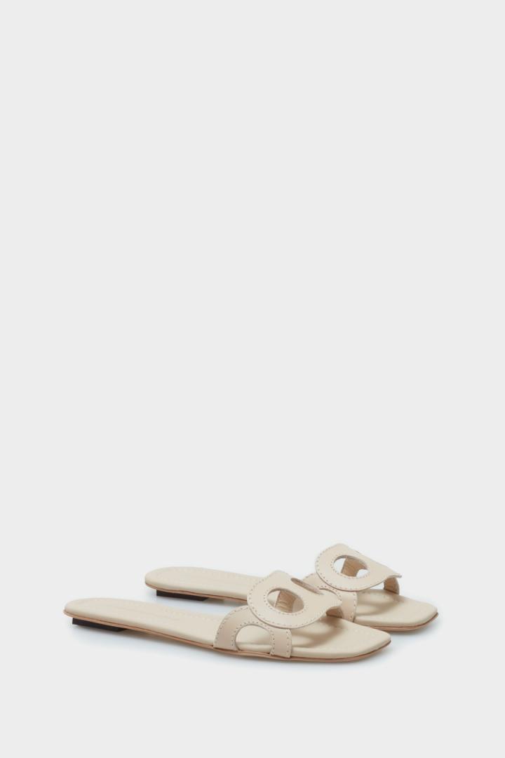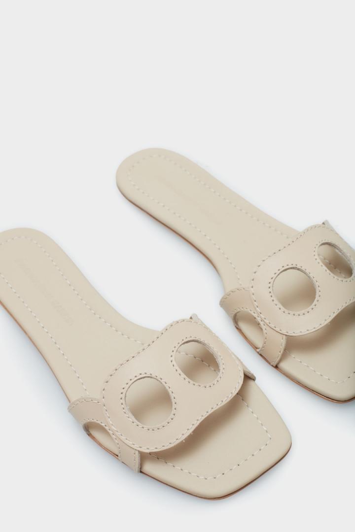 Sandalia plana en piel Napa con diseño Ocho troquelado y pespuntes a tono. Plantilla de piel a tono.
