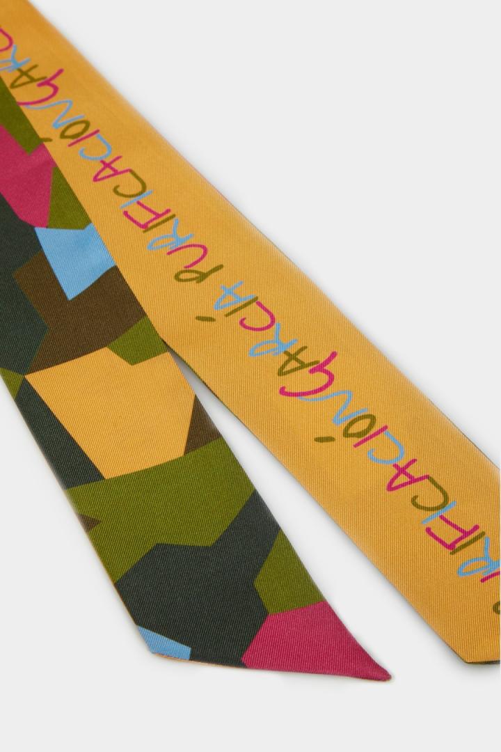 Skinny en seda con estampado de camuflaje geométrico y logo Purificación García en el reverso.