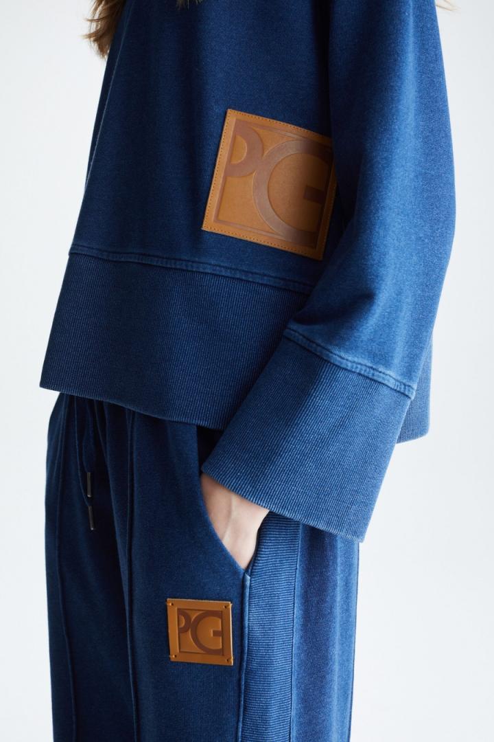 Sudadera de línea oversize en felpa de mezcla de algodón con detalle de etiqueta de piel con Cubo PG grabado en el delantero. Cuello redondo con detalle de pico, cuello, puños y bajo acanalados, hombro caído y manga larga. Tiene pantalón a conjunto. La modelo mide 178 cm y lleva una talla XS.