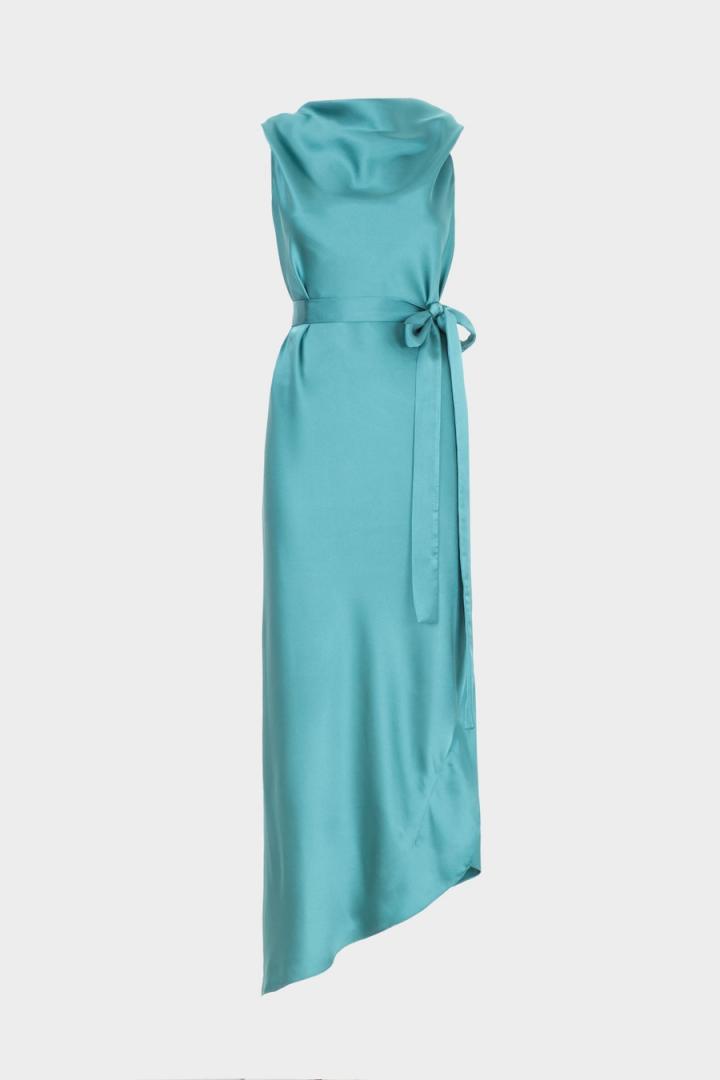 Mujer Purificacion Garcia VESTIDO DRAPEADO SATEN CINTURON Azul Turquesa | Vestidos